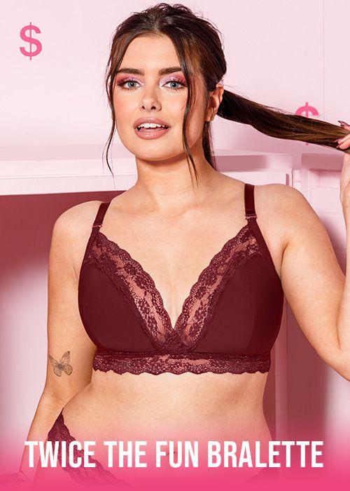 Finally, we have to give Curvy Kate a mention when it comes to cute lace lingerie. Curvy Kate never fails to serve unique, flattering and supportive underwear that we can all be excited to wear. This brand focus on the larger cup sizes so if you are a DD+ searching for lace lingerie, then this is for you. This season Curvy Kate have released the popular Twice The Fun Reversible Bralette in a brand new colour. It's now available in black/oxblood. That means one side is a sultry, Autumnal red and the other is a classic black. You can switch it up and wear it however you like. This is a soft, non-wired bralette that is ideal for cosy season if you ask us. The main bulk of this bra is made from a soft and stretchy fabric. But the neckline and underband are effortlessly lined with super soft lace. Yes, you can add to basket immediately. But if you are not sold yet, maybe this is the lace lingerie set you have been searching for. Curvy Kate's sister brand Scantilly has brought you the Indulgence Bralette, now available in red or black. This is a little more of a seductive lace bralette style thanks to the deep plunging neckline. Again it is non-wired but can still support the fuller bust ... amazing we know. This bra features stunning lace panels front and centre plus cheeky scalloped edging bringing you flirty vibes.