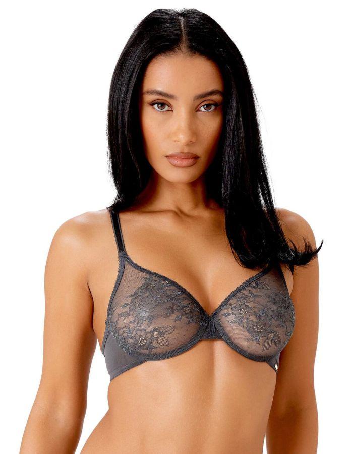 Gossard Glossies Lace Sheer Bra - Charcoal