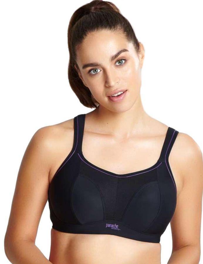 The Sports Bra by Panache Lingerie has been designed to reduce breast bounce by up to 83%.The Panache sports bra offers the ultimate support for any sport. A favourite due to its supreme support and comfort whilst exercising. The fashionable and stylish sports bras has lightly moulded cups to reduce friction, and is the first non wired Sports bra that Panache has designed. The non wired bras has been designed to offer excellent support without the need for the additional underwired support. The sports bra keeps moisture away from the skin with a breathable mesh to keep the body cool during exercise, with adjustable padded shoulder straps and fastens with three hooks at the back across three columns. The bra comes with the option to change the sports bra to a racerback with the J-Hook Feature.