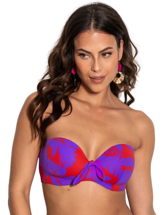 Pour Moi Heatwave Strapless Padded Bikini Top - Red/Purple